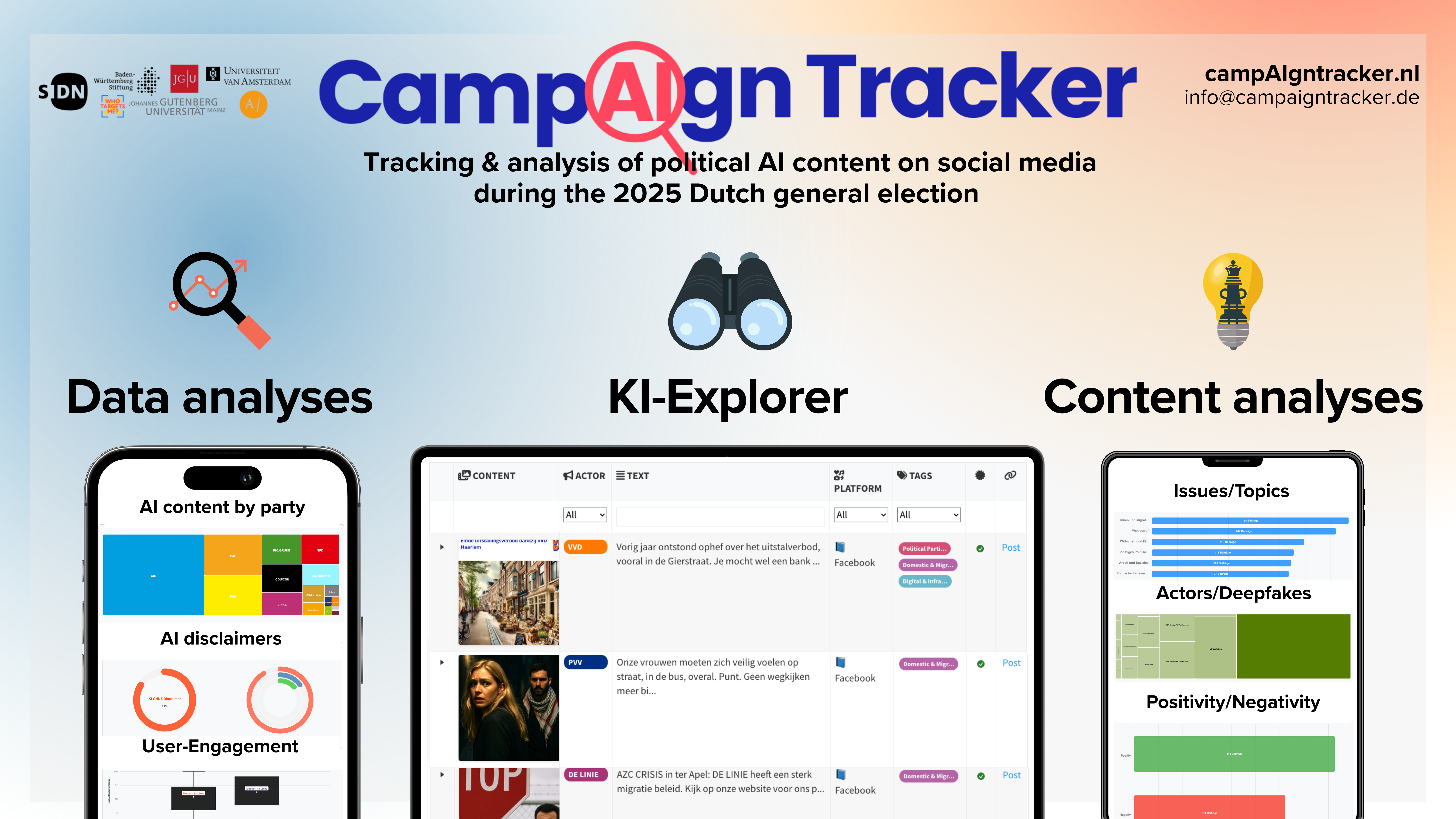 As the October 29 election approaches, the CampAIgn Tracker will provide ongoing monitoring of how political actors across the Dutch political spectrum employ AI-generated content. The platform will update regularly as new content appears, allowing journalists and researchers to track developments throughout the campaign period.